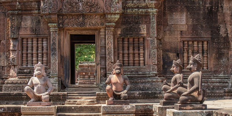 Morning, visit Banteay Srei Temple located twenty-five kilometers north of Angkor Wat This temple is the fabled pink temple of women, so-called because it is made of pink sandstone and considered a tribute to the beauty of women. Its small size, delicate carvings and remarkable state of preservation make Banteay Srey one of everyone's favorite temples. Its Apsara and male and female. Then it will be finished by visit Banteay Samre temple.
